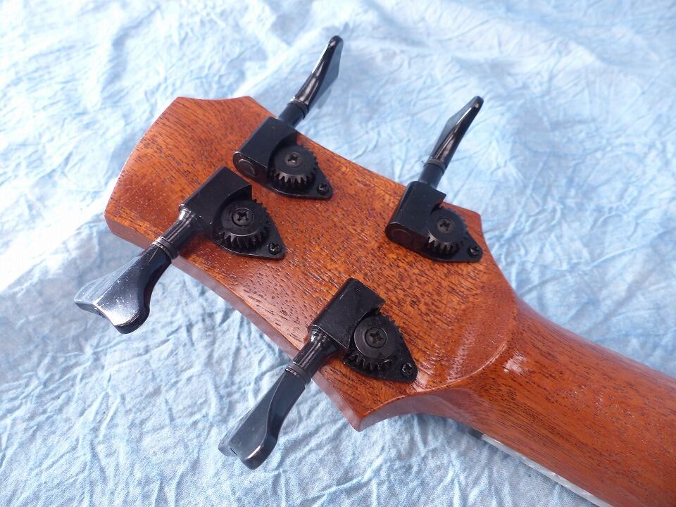糸巻は中国製でKALAのUベースに使われているものとほとんど同じ。どんな弦(太いダダリオ弦から細いKALAのスティール弦まで)にも対応できます。