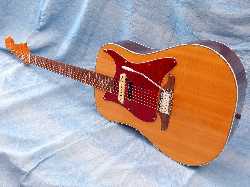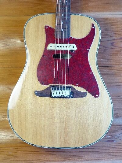 アコギにシンクロナイズド・トレモロ・ブリッジを搭載した改造ギター