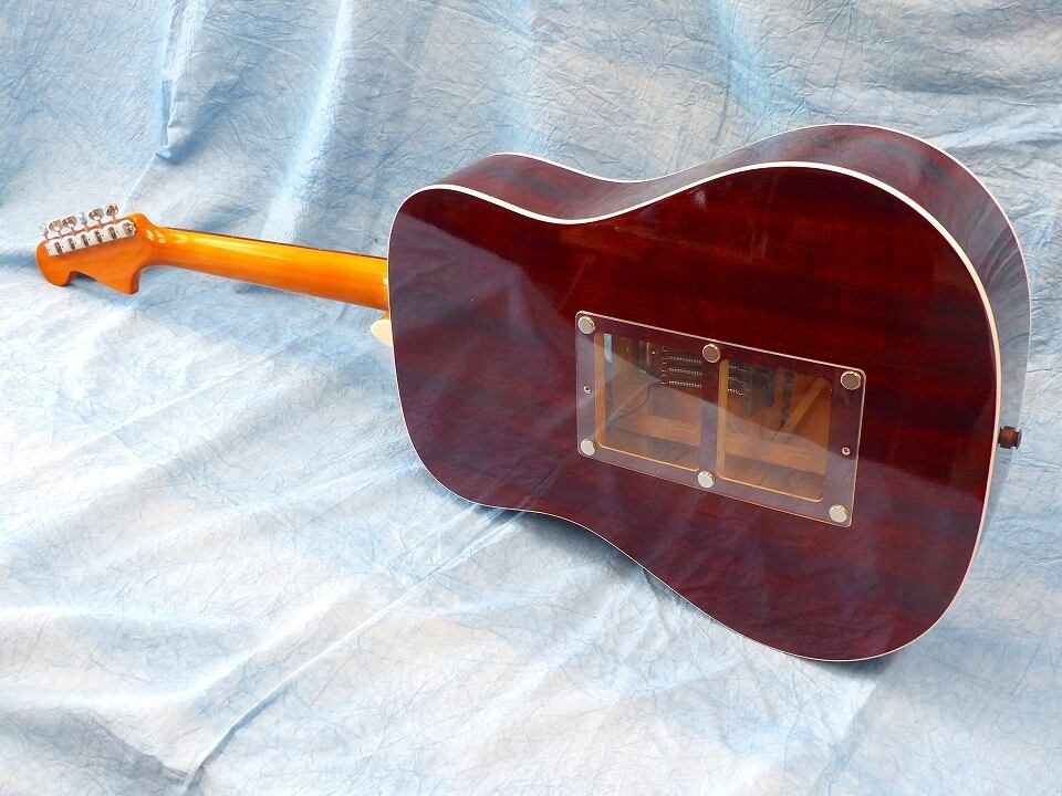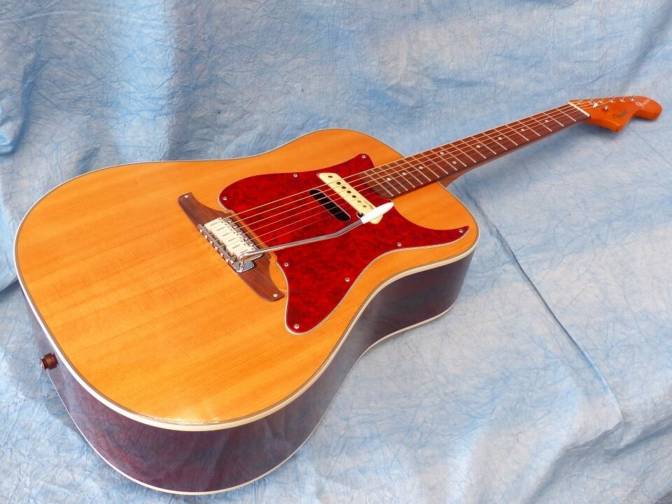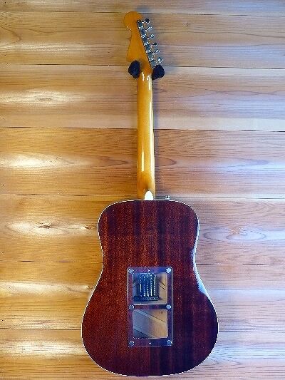 本体は新品の中国メイドのフェンダー製「ソノラン」、表板スプルース単板・サイド/バックがマホガニー合板です。