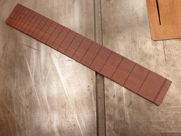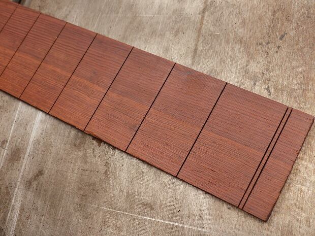 スモークド乾燥済み「Fenderスケール マダカスカルローズ指板材(フレット溝切り加工済み)」
