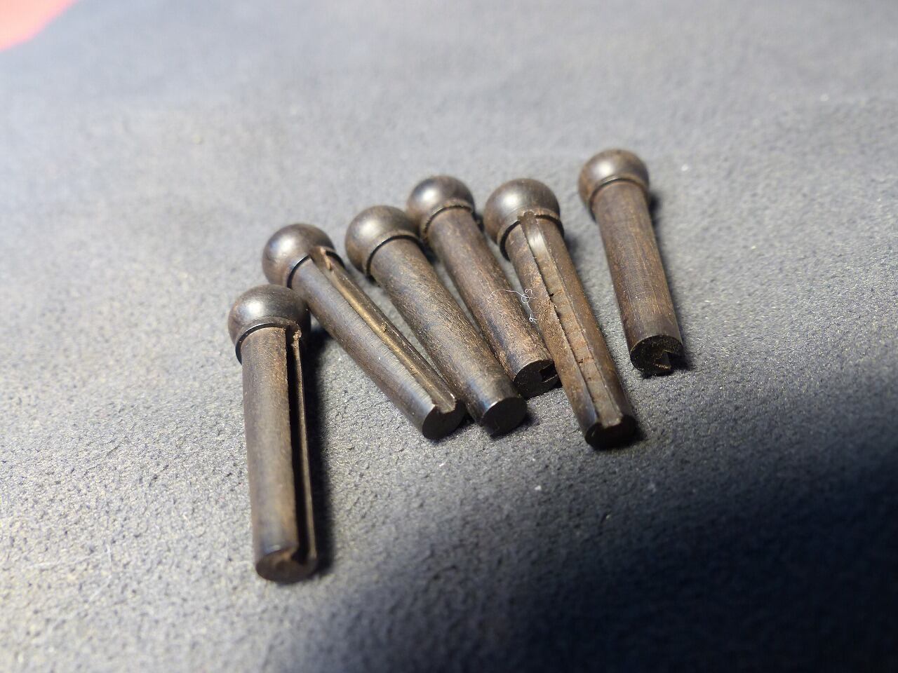 ”スモークド乾燥”処理済み『黒檀ブリッジピン』:弦誘導用の溝穴付き(Top5.3ミリ~bottom4.2ミリ / 各個多少バラつきあり)