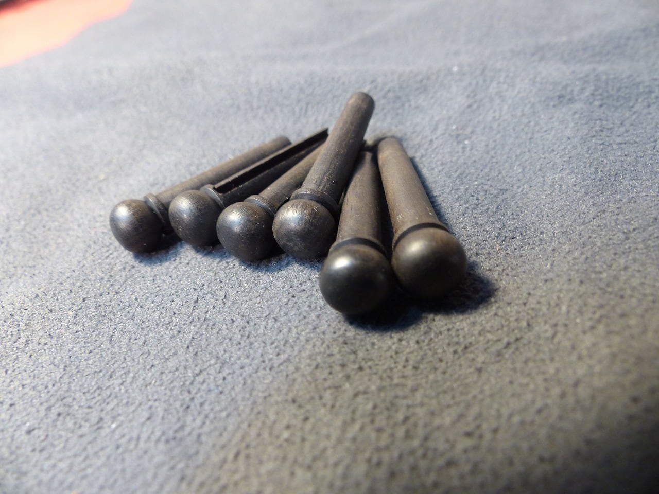 先に”スモークド乾燥処理”済み『 黒檀ブリッジピン・黒檀サドル・黒檀ナット』を販売しましたが、なぜだかブリッジピンだけ欲しいという方が多く在庫を切らしておりました。 そこで単品販売に至りました。